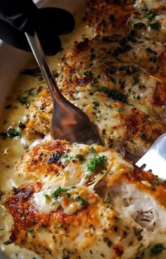 🧄 Baked Caesar Chicken with Creamy Parmesan Sauce🦉