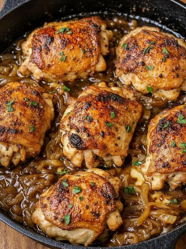 Cheese Lovers: Want to go full French onion soup? Top each chicken thigh with a slice of Gruyère or Swiss cheese during the last 5 minutes of cooking. Cover the pan to melt the cheese into gooey perfection.